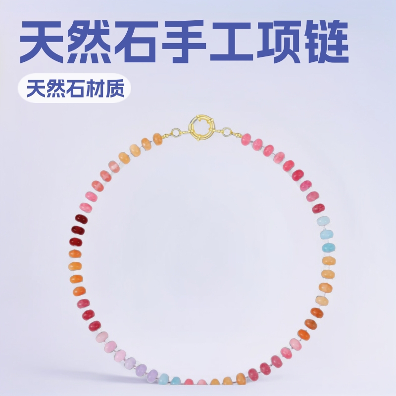 Cross-Border Amazon Best-Selling Choker Colorful Beaded Necklace Summer Beach Dopamine Natural Stone Rainbow Necklace