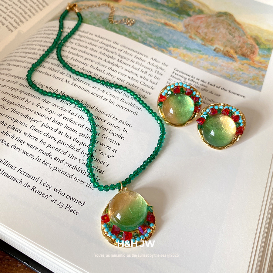 French Glass Round Resin Beaded Necklace Retro Palace Style Clavicle Chain Fashionable and Elegant Versatile Necklace Wholesale