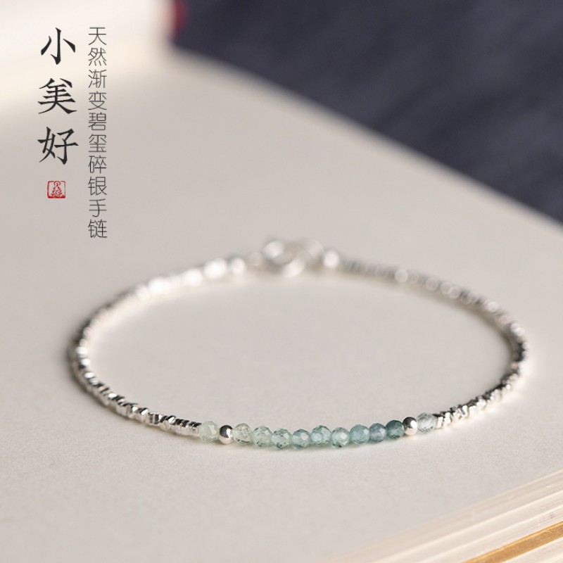 Small Broken Silver Natural Gradient Blue Tourmaline 925 Sterling Silver Bracelet Women's Best Friend Simple Gift Fine Bracelet