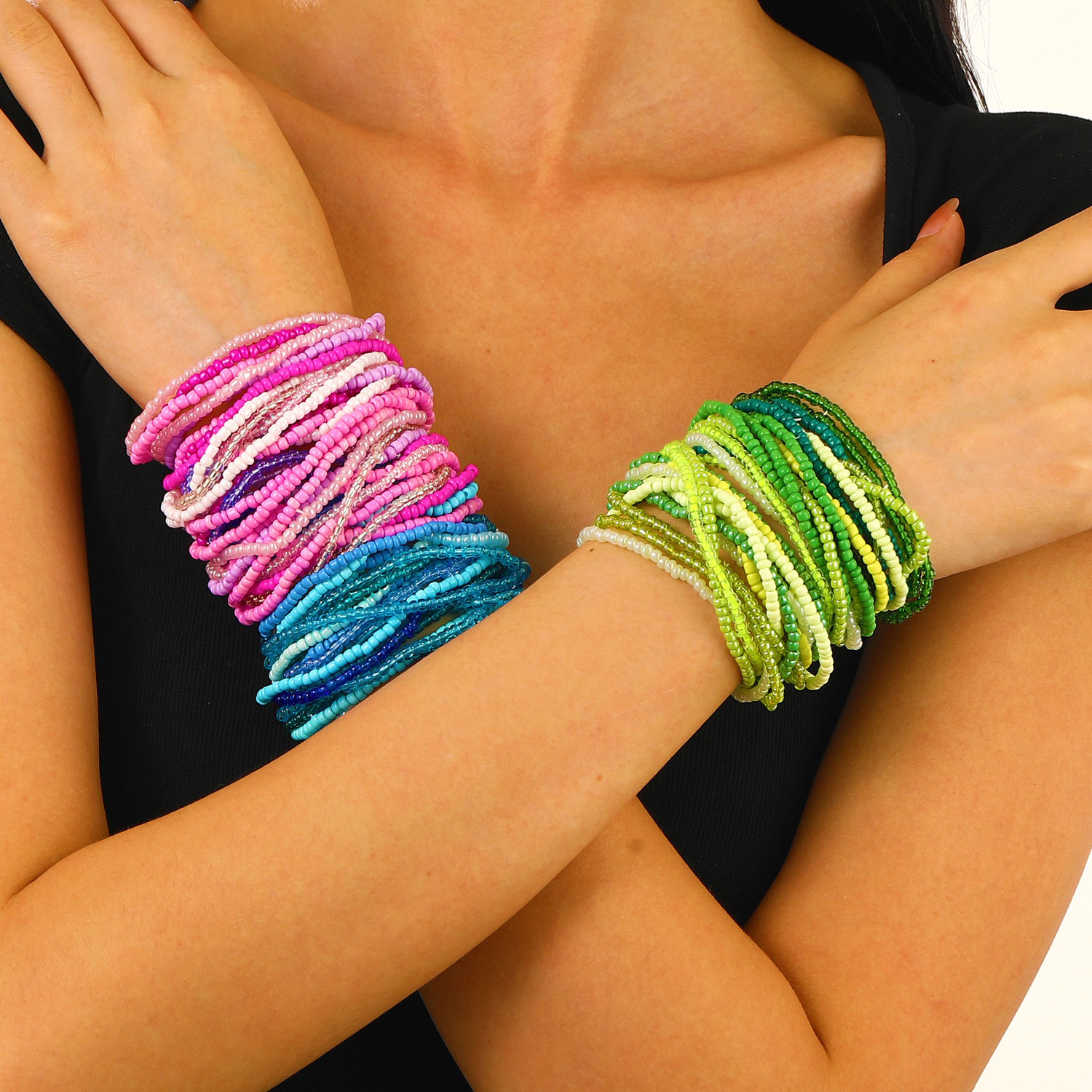European and American Cross-border Ins Style Gradient Color Rice Beads Beaded Elastic Bracelet suit Hand-woven Dopamine Bracelet