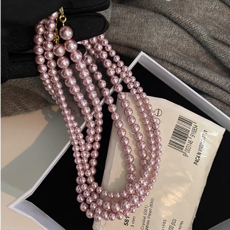 Shi Jiazhu Light Luxury Simple Purple Pink Pearl Necklace Accessories Design Sense Niche White High-end Sense Clavicle Chain Women