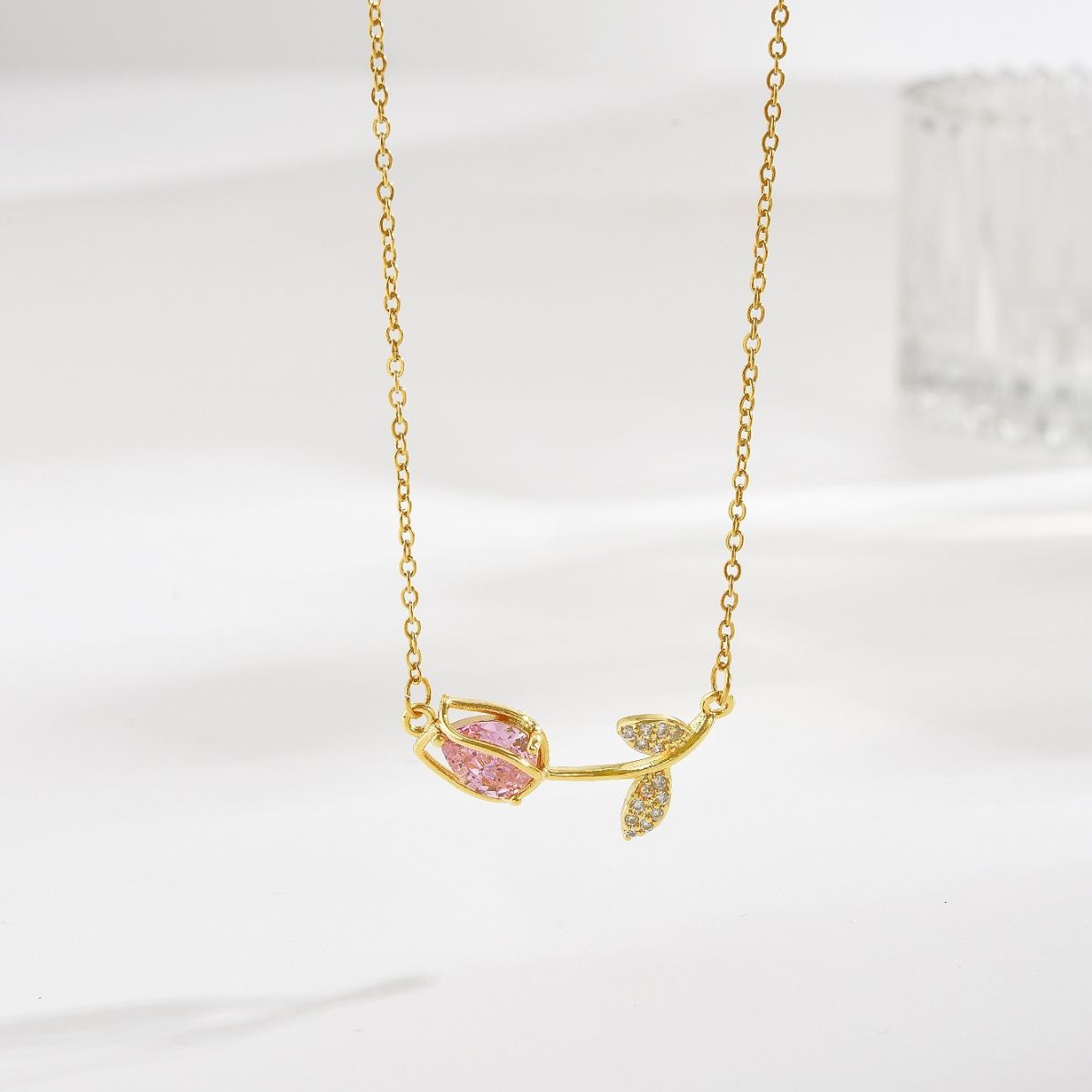Titanium steel non-fading clavicle chain pink rose necklace Women's Light luxury niche design all-matching jewelry Yiwu Wholesale