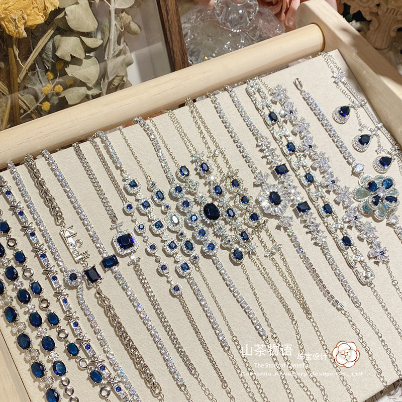Camellia cross-border supply simulation jewelry vintage Tan sang blue bracelet plated 18K micro-inlaid full diamond color treasure new bracelet