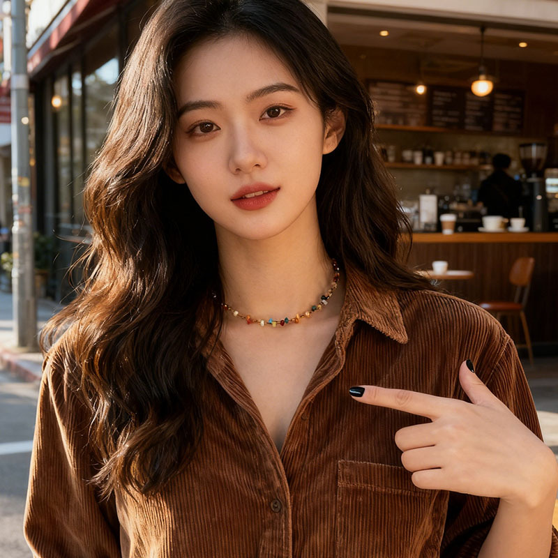 European and American Cross-border Fashion Personalized Niche Titanium Steel Gold-plated Natural Stone Pendant Handmade Beaded Necklace Simple Jewelry for Women