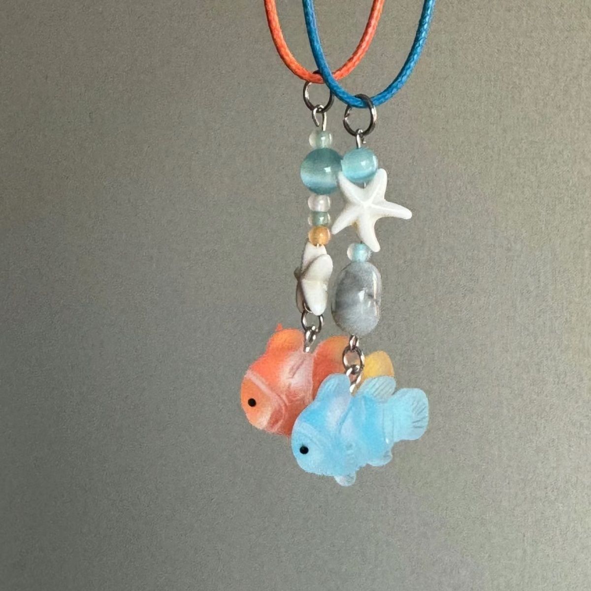 Little Red Book Same Orange Clown Fish Necklace Cute Blue Fish Beaded Necklace Lovers Necklace Gift