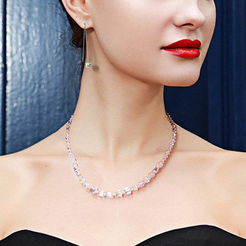 Cross-Border Temu Colorful Crystal Necklace Export Jewelry Amazon Best-Selling Aurora Square Crystal Necklace Clavicle Chain