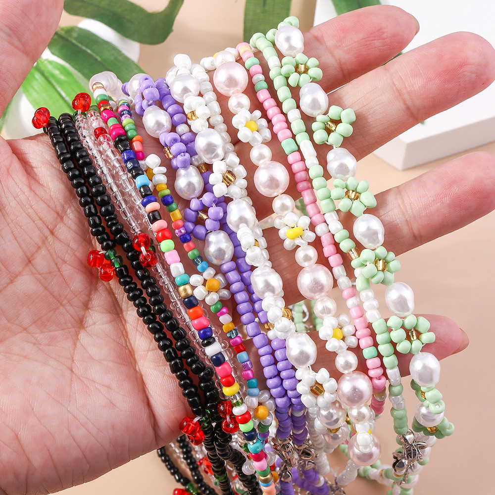 South Korea ins style crystal beaded necklace female niche design versatile Pearl colorful rice beads clavicle chain jewelry