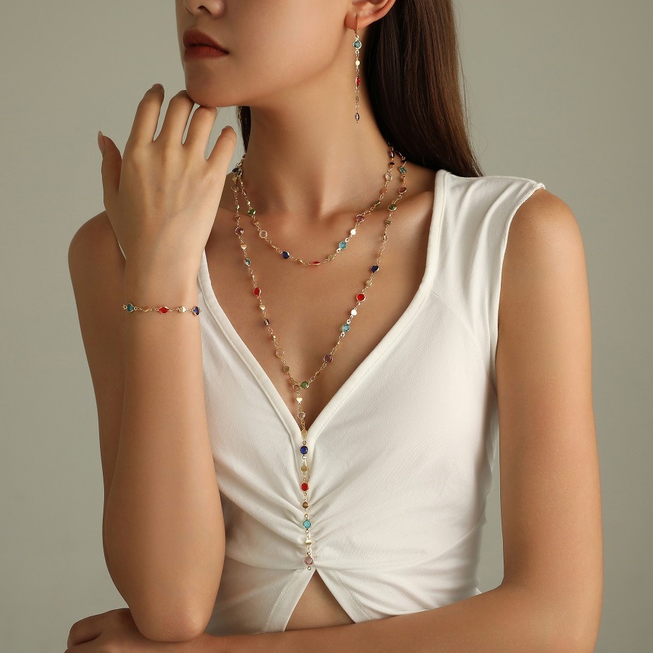 Cross-border new European and American style fashion creative color rhinestone tassel necklace niche high color zircon clavicle chain