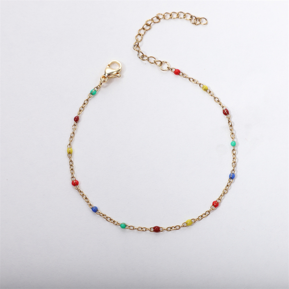 Color drop glaze stainless steel bracelet 18k gold vacuum plating cross enamel bead chain DIY jewelry accessories