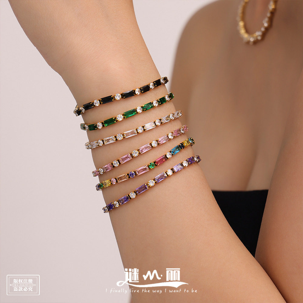 Enigma Europe style color zircon color matching bracelet stainless steel plated 18K gold bracelets spring and summer all-match accessories