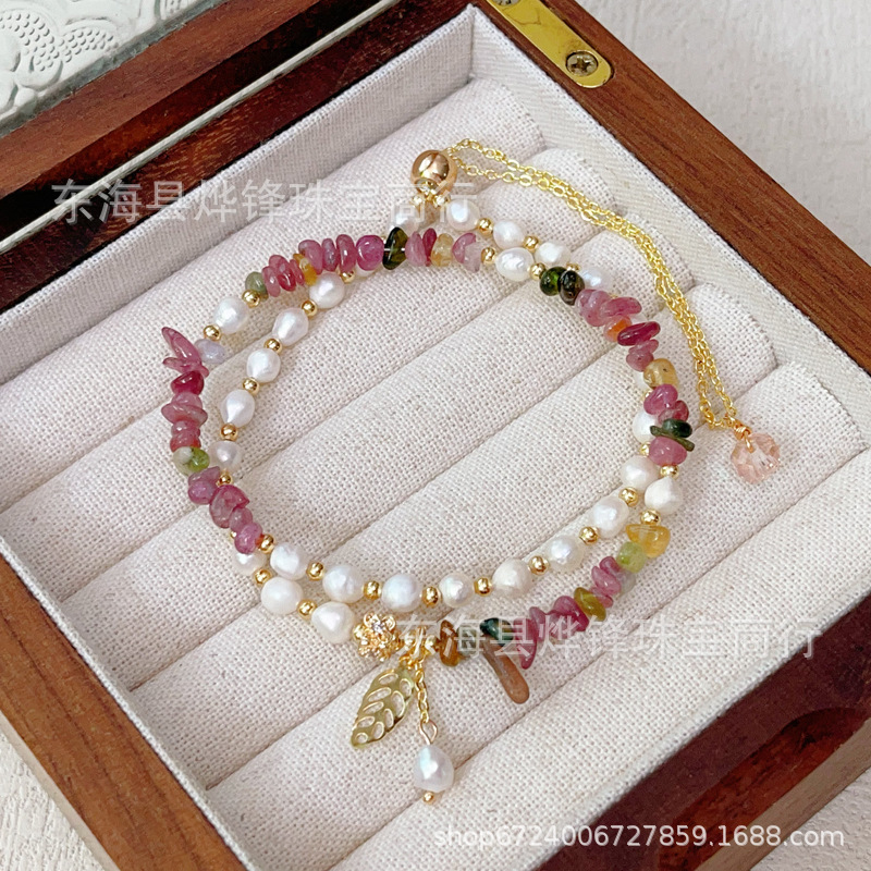 Natural Freshwater Pearl Tourmaline Bracelet with Colorful Dopamine High-Quality Textured Rice Beads Splicing Light Luxury