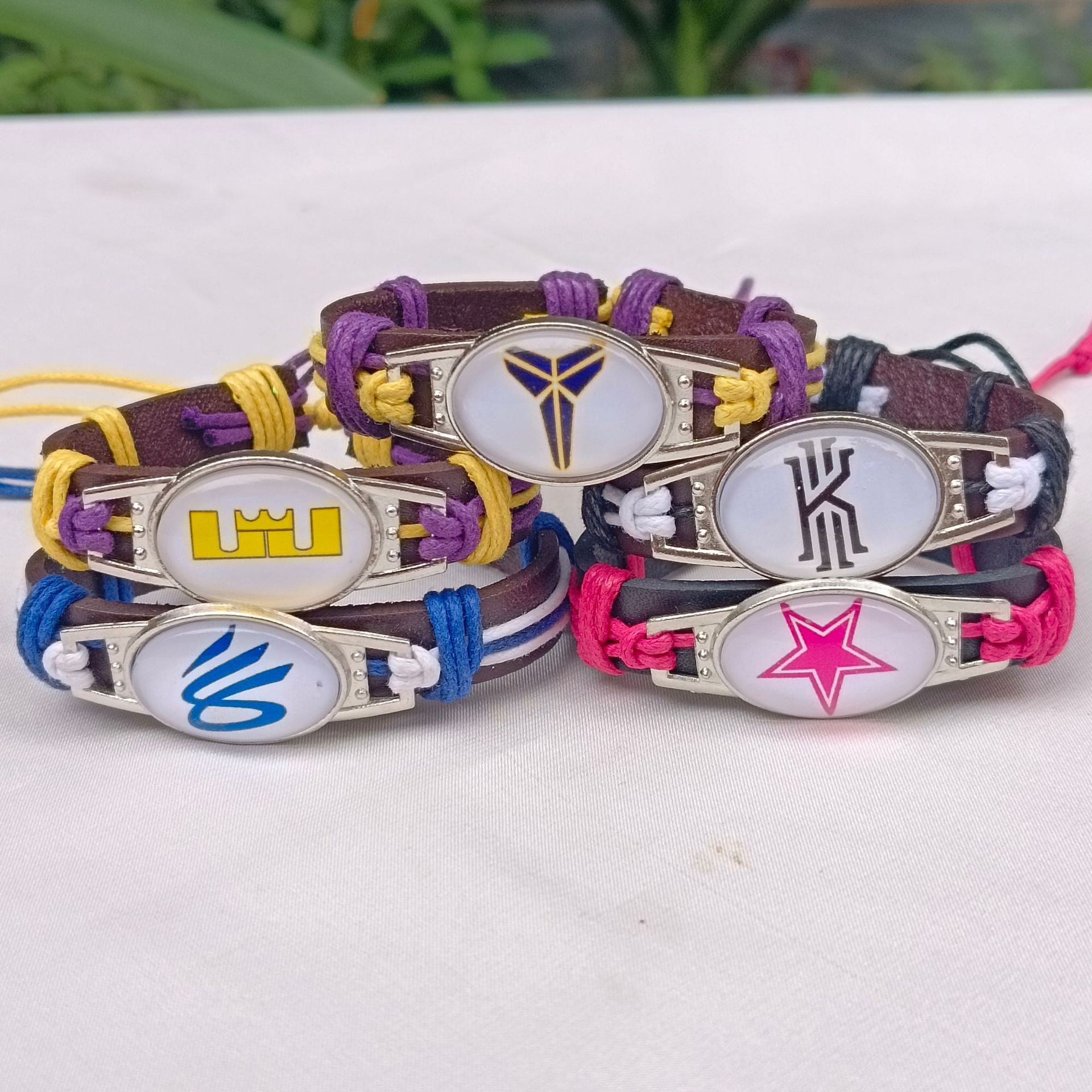 NBA Kobe James star cowhide color wax thread hand woven bracelet retro leather men's sports