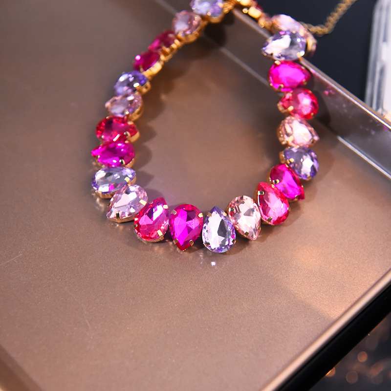 New Color Crystal Necklace European and American Exaggerated Personality Light Luxury Water Drop Necklace Yan Club Dress Accessories Necklace