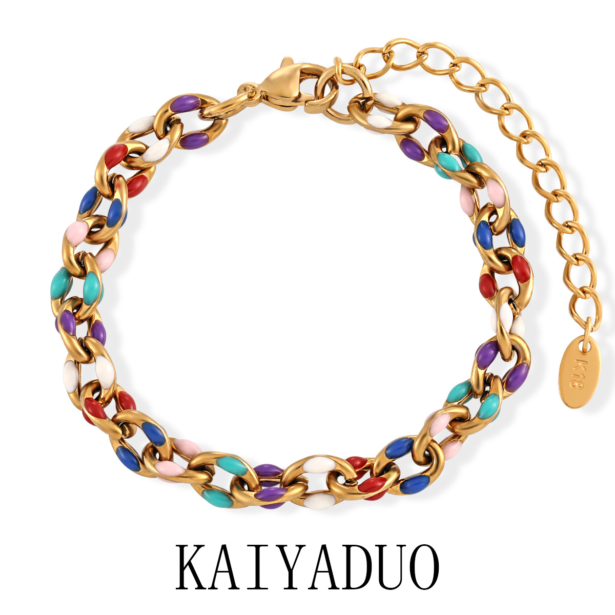 New Bohemian Style Color Drop Glue Cuban Chain Titanium Steel Bracelet Women's Fashion High-end Sense Niche Bracelet
