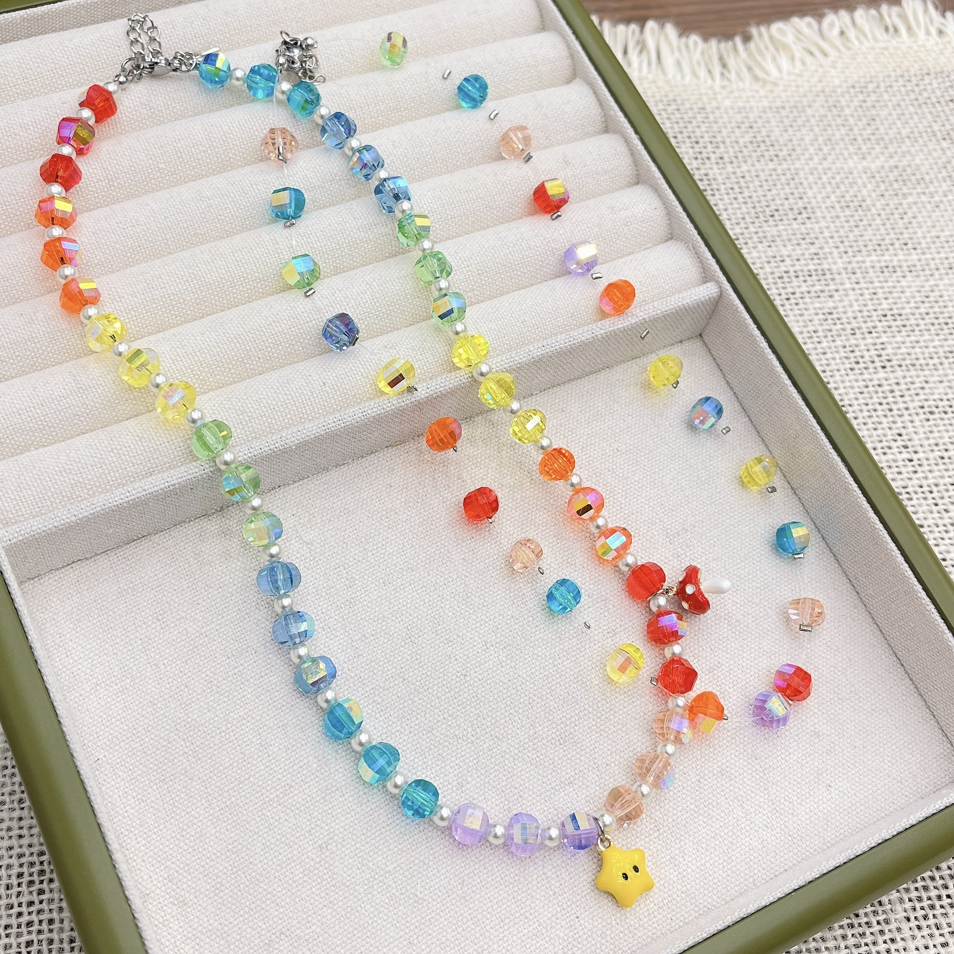 Shake Tone Same Style Fresh Niche Dopamine Color Crystal Beaded Necklace Simple Sweet Contrast Color Rainbow Necklace Women