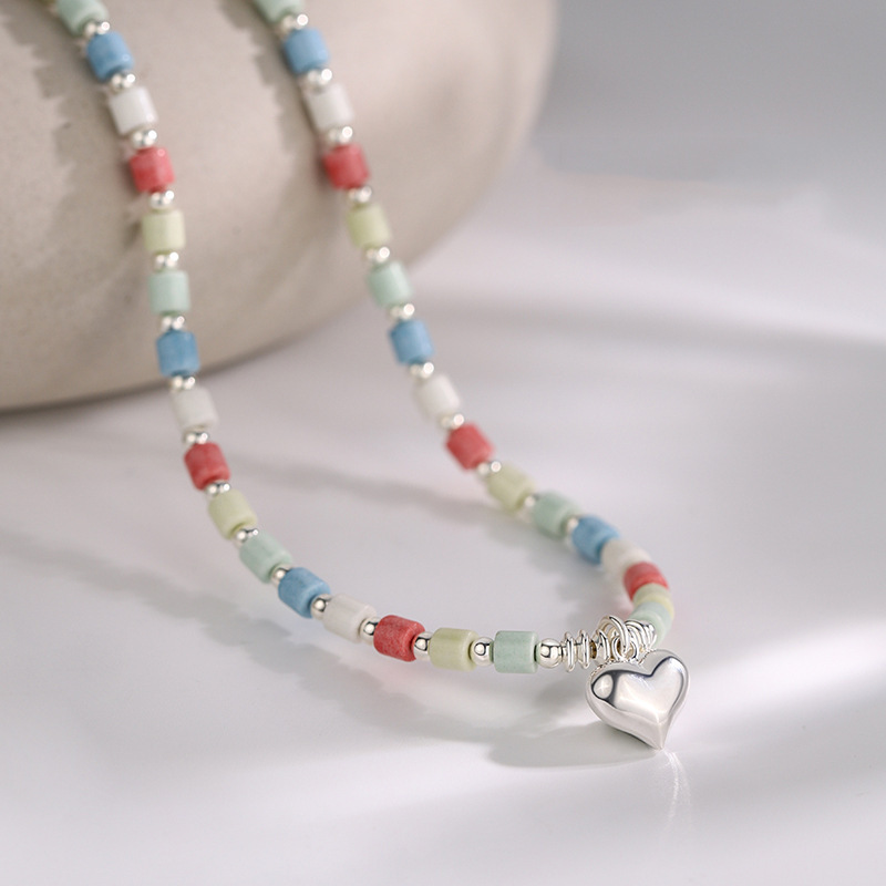 European and American Cross-border New Color Sacred Heart Necklace Personalized Artistic Rice Beads Heart-shaped Pendant Jewelry Stacked with Jewelry Women