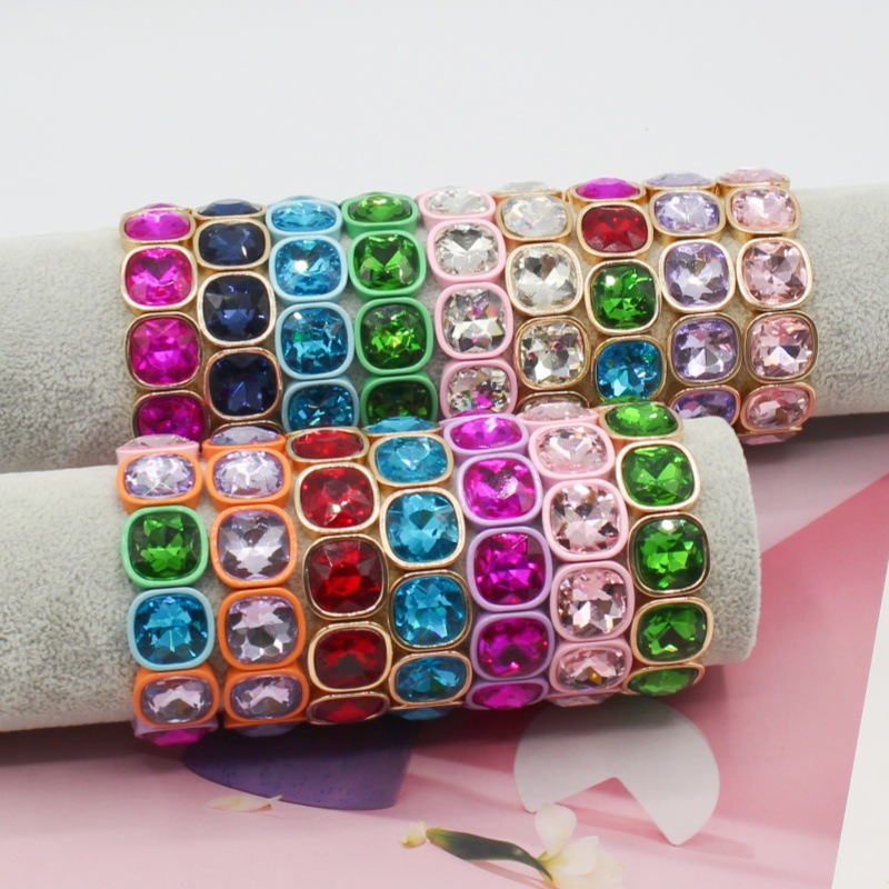 New European and American Hot-Selling Enamel Bracelet Colorful Rubber Paint Gemstone Flower Crystal Plated Colorful DIY Summer Style Exaggerated Bracelet