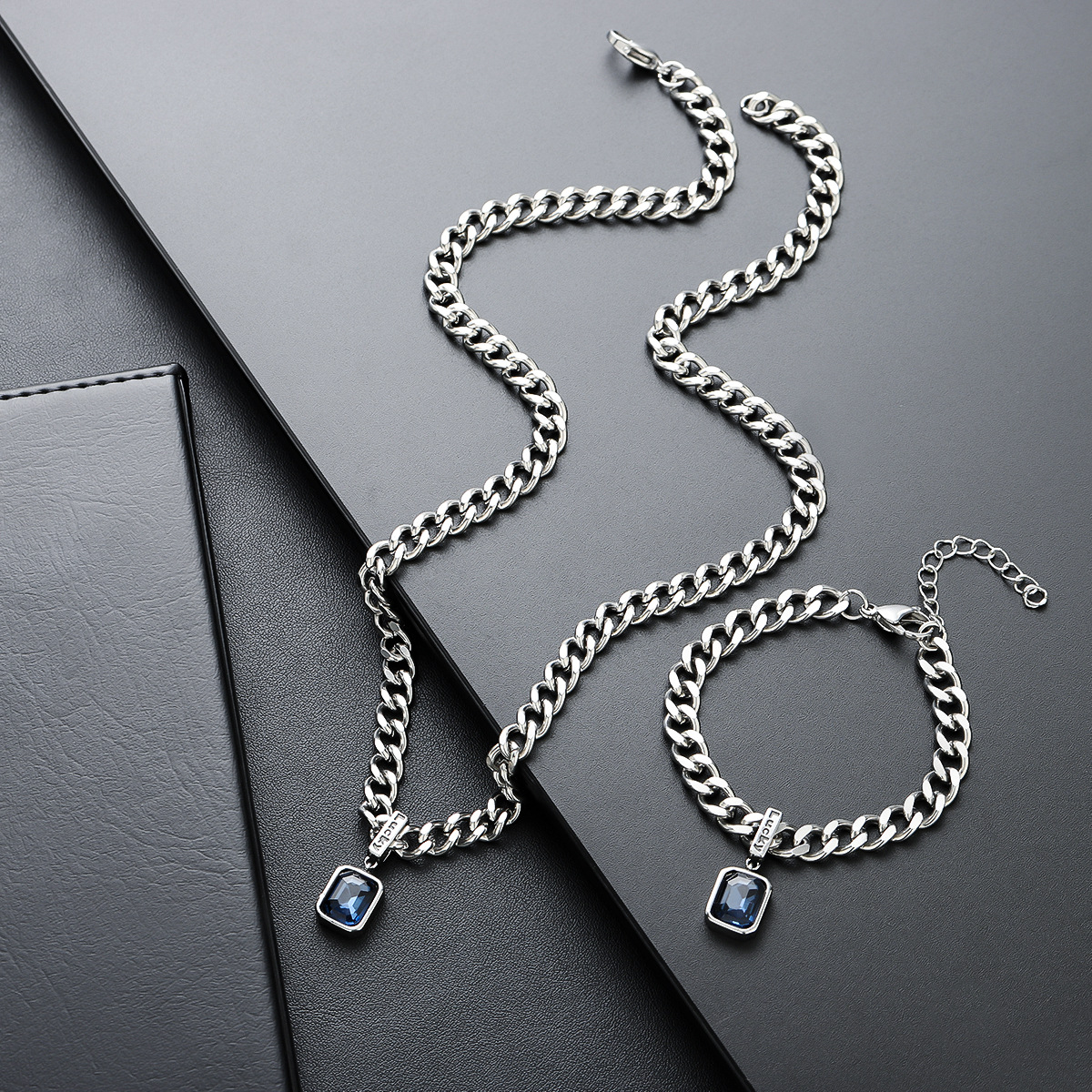 Necklace Men's Color Zircon Light Luxury High-end Personalized All-match Simple Bracelet Accessories Women's Trendy Niche European and American Jewelry