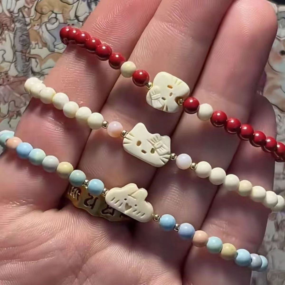 Little Red Riding Book with Cute Cartoon Hello Kitty Bracelet Fashion Color Beaded Hand-woven Drawstring Sweet