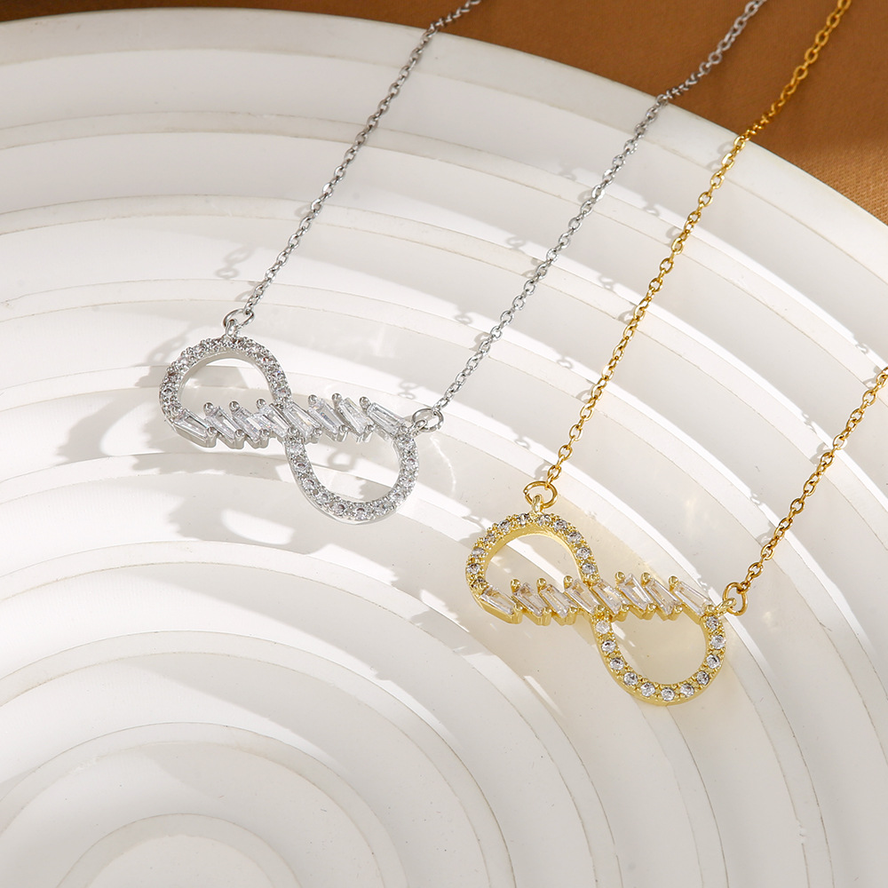 Internet Celebrity Necklace Female Cross-border Color Zircon 8-character Niche Light Luxury New Style Design Sense Pendant Elegant Titanium Steel Necklace