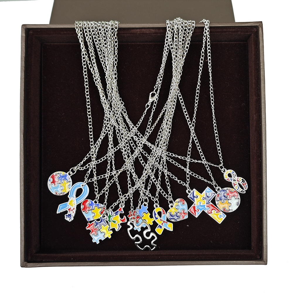 Foreign Trade Jewelry Color Alloy Round Ribbon Puzzle Oil Dripping Geometry Autism Series Necklace Manufacturer Wholesale