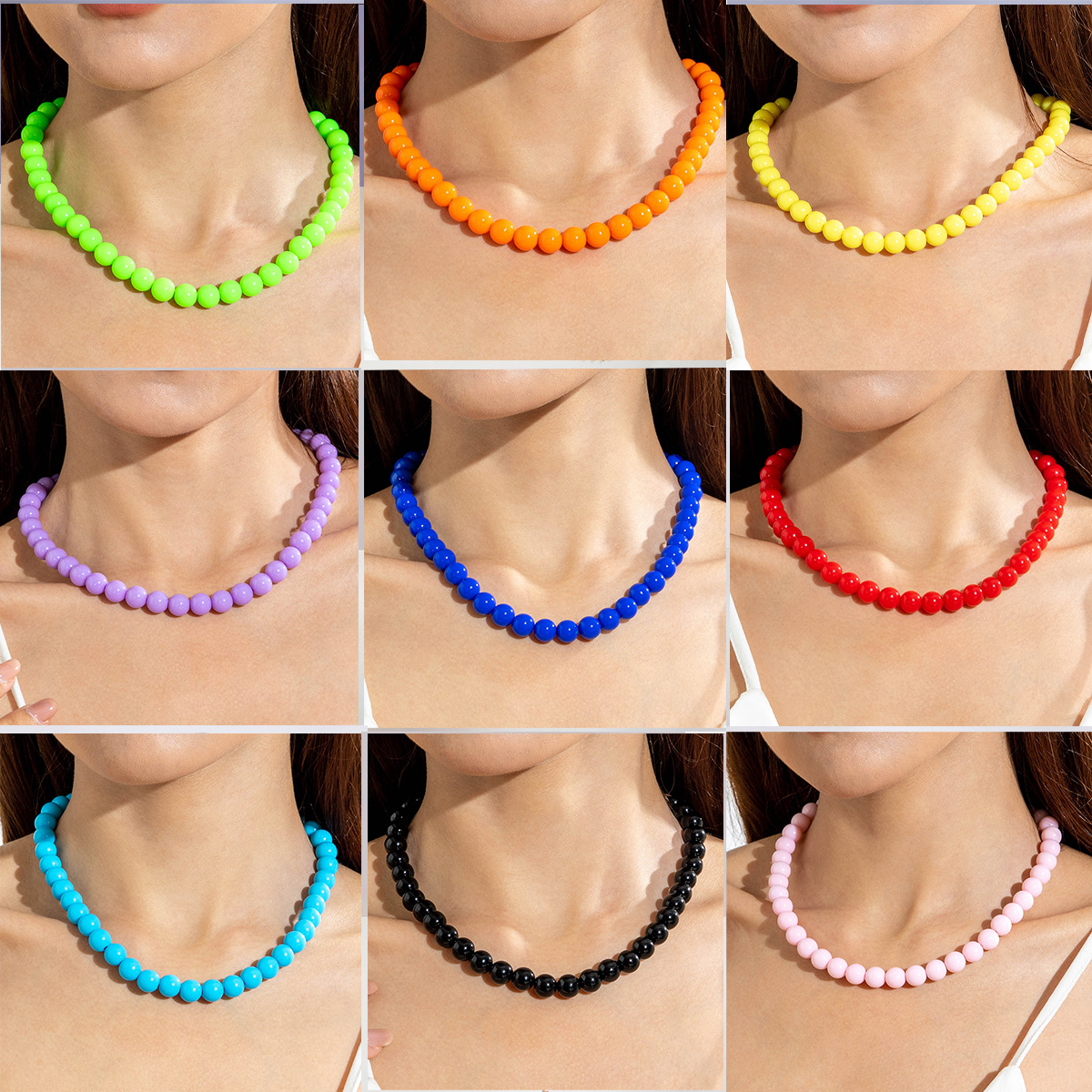 European and American Cross-Border Geometric Dopamine Colorful Beaded Necklace Simple Round Versatile Acrylic Choker Jewelry for Women