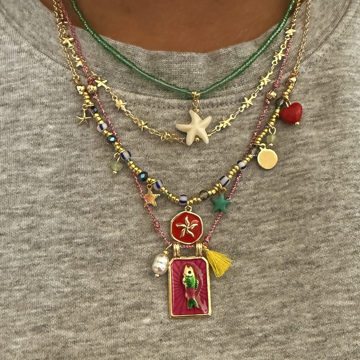 Holiday Island Dopamine Colorful Starfish Beaded Necklace Women's Seaside Vacation Clavicle Chain Long Halter Accessory