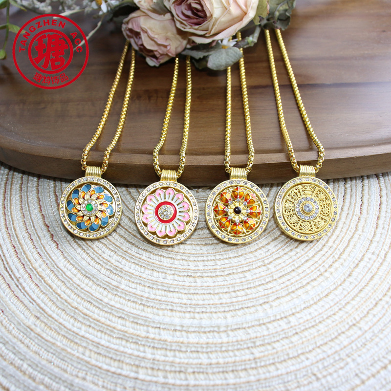 New Chinese Style Rotatable Red and White Diamond Rose Window Pendant Gold Shop Same Gold Plated Eight Treasure Compasses Necklace