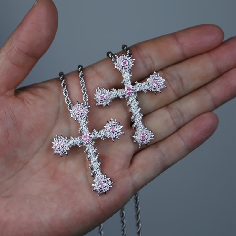 Necklace for Men and Women, Cross-Border New Style, Personalized Niche Color Zircon Cross Necklace, Versatile Clavicle Chain Jewelry