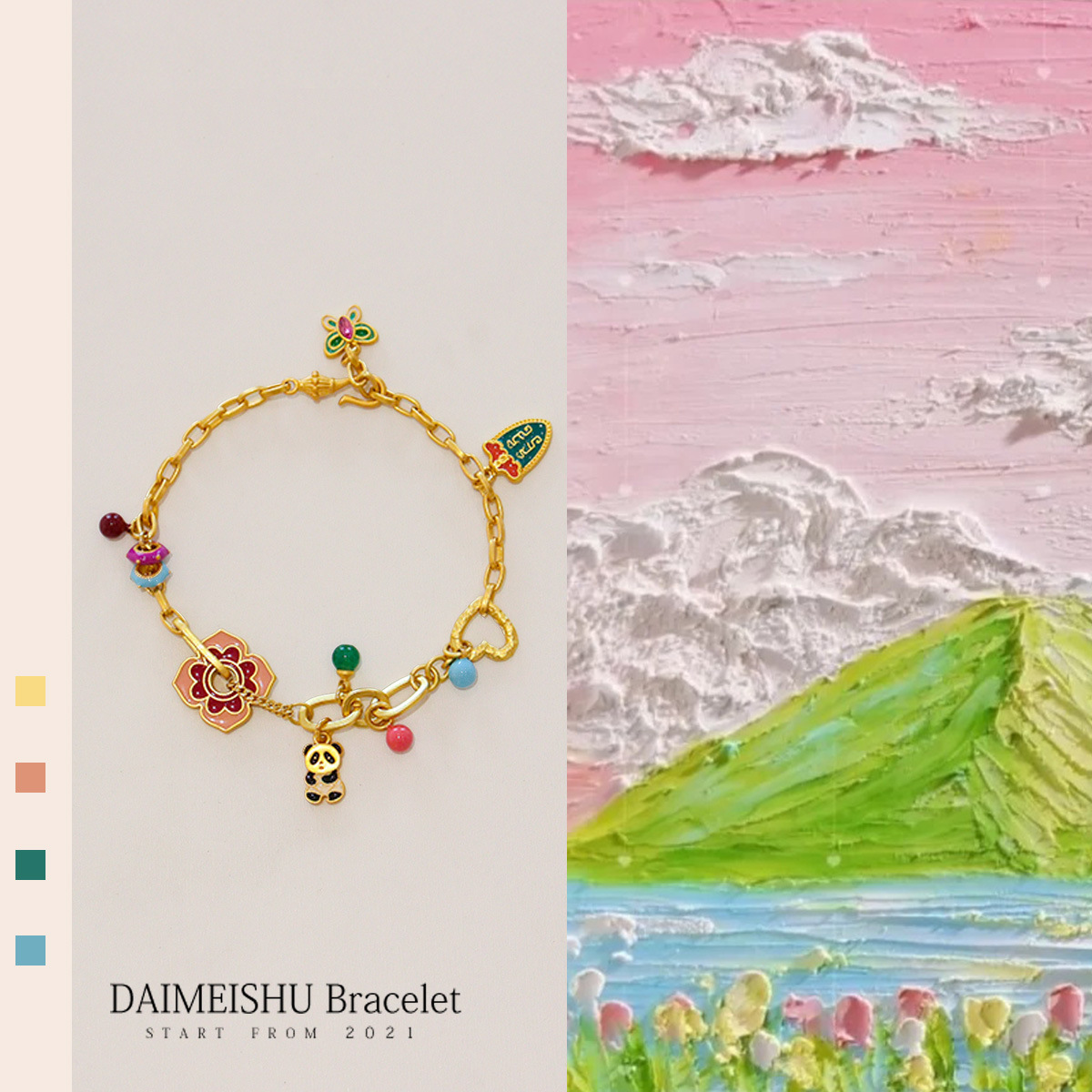 Fashion exquisite color dopamine oil enamel panda flower butterfly bracelet light luxury high-end chain bracelet