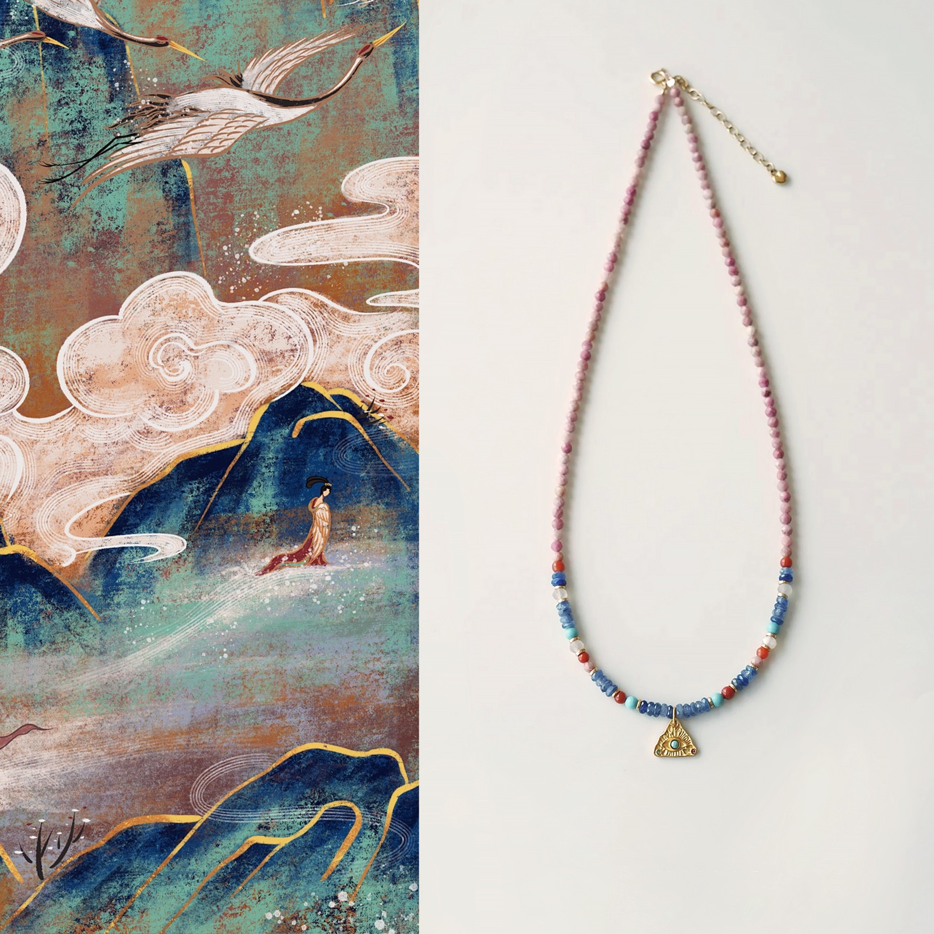 New Chinese Style Dunhuang Style Natural Stone Beaded Necklace Women's Summer No Fading National Style Color Dopamine Clavicle Chain