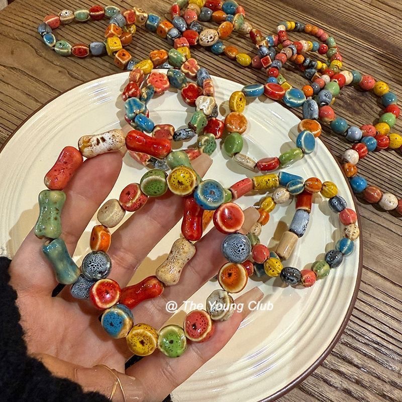 European and American new summer niche color natural stone beaded necklace women's fashion bracelet light luxury temperament jewelry wholesale