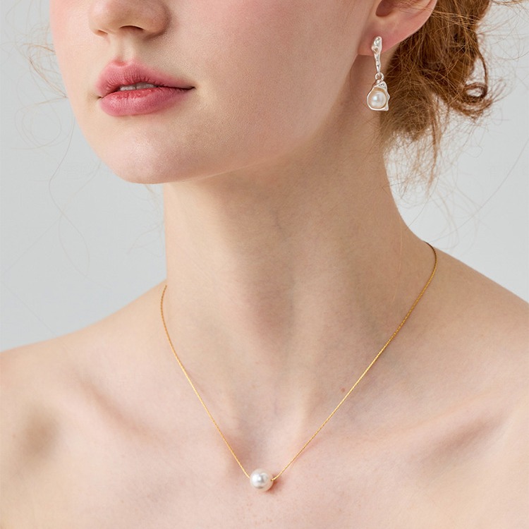 Colorful Pearl Necklace Light Luxury Shijia French One Pearl Necklace Light Luxury Fashion Design Clavicle Chain Simple