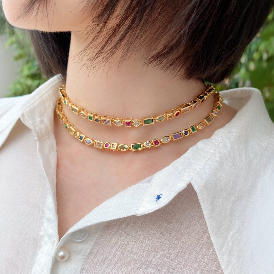 European and American Simple Colorful Zircon Bracelet Micro-inlaid Colorful Zirconium Personality Hip-Hop Bracelet Ins Clavicle Chain Necklace