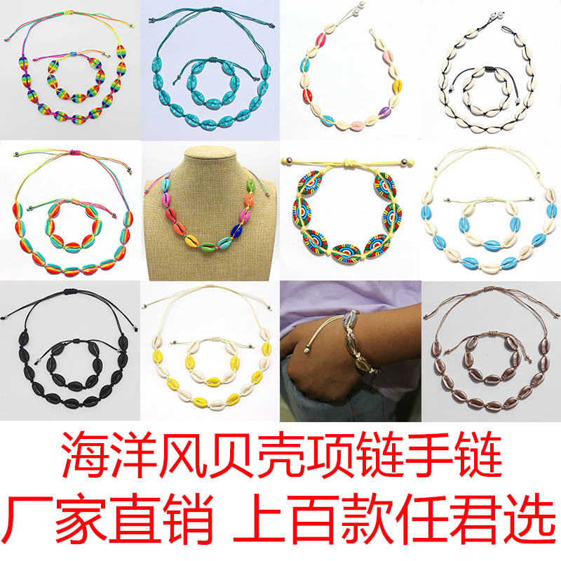 Cross-border hot sale Ocean style color shell necklace bracelet suit alloy shell necklace factory in stock wholesale