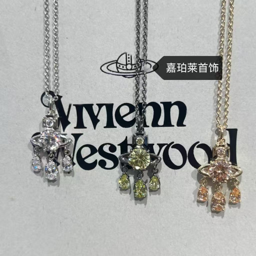 High-Quality Empress Dreamcatcher Mermaid Tears Colorful Zircon Saturn Necklace Earrings Sweet Super Shiny Sweater Chain