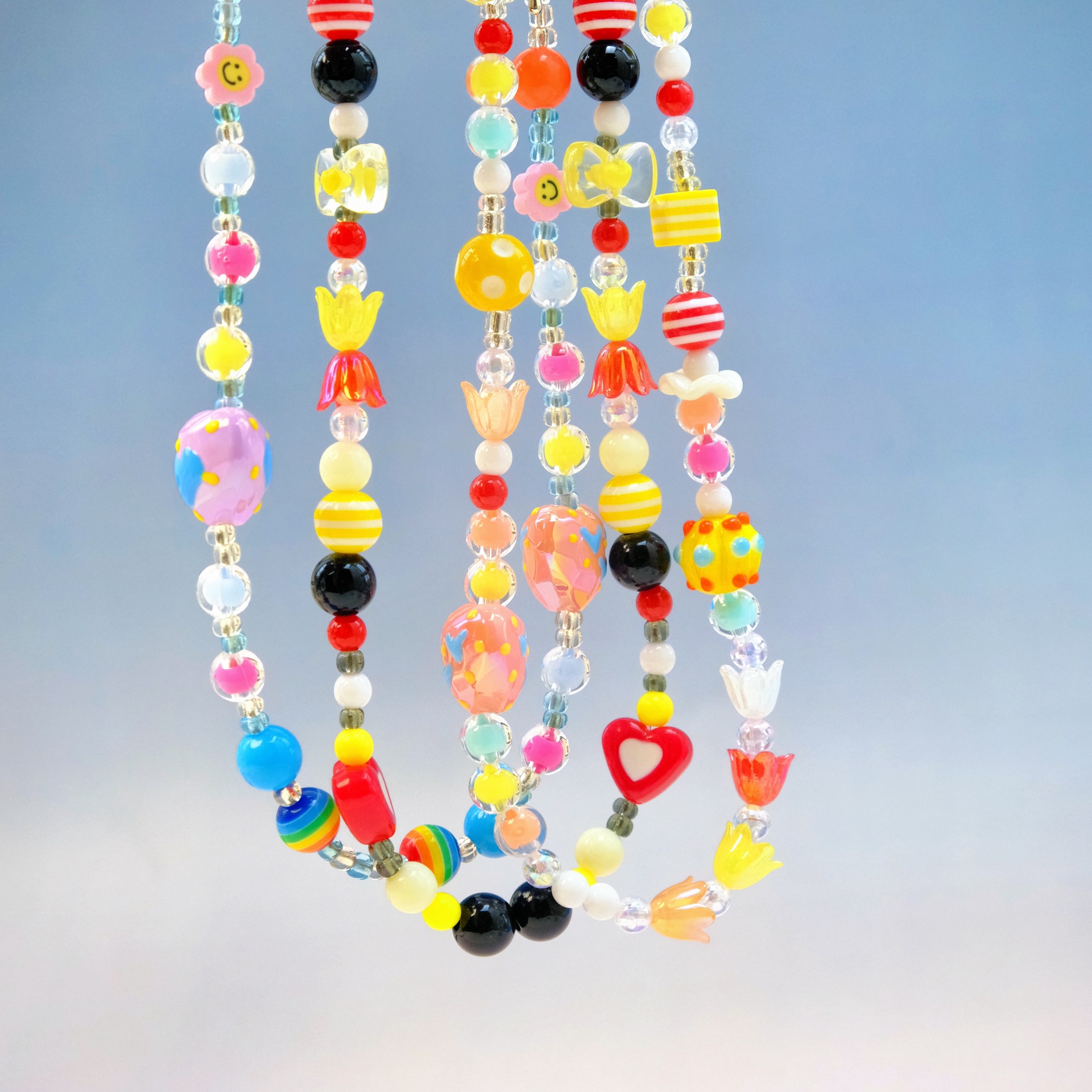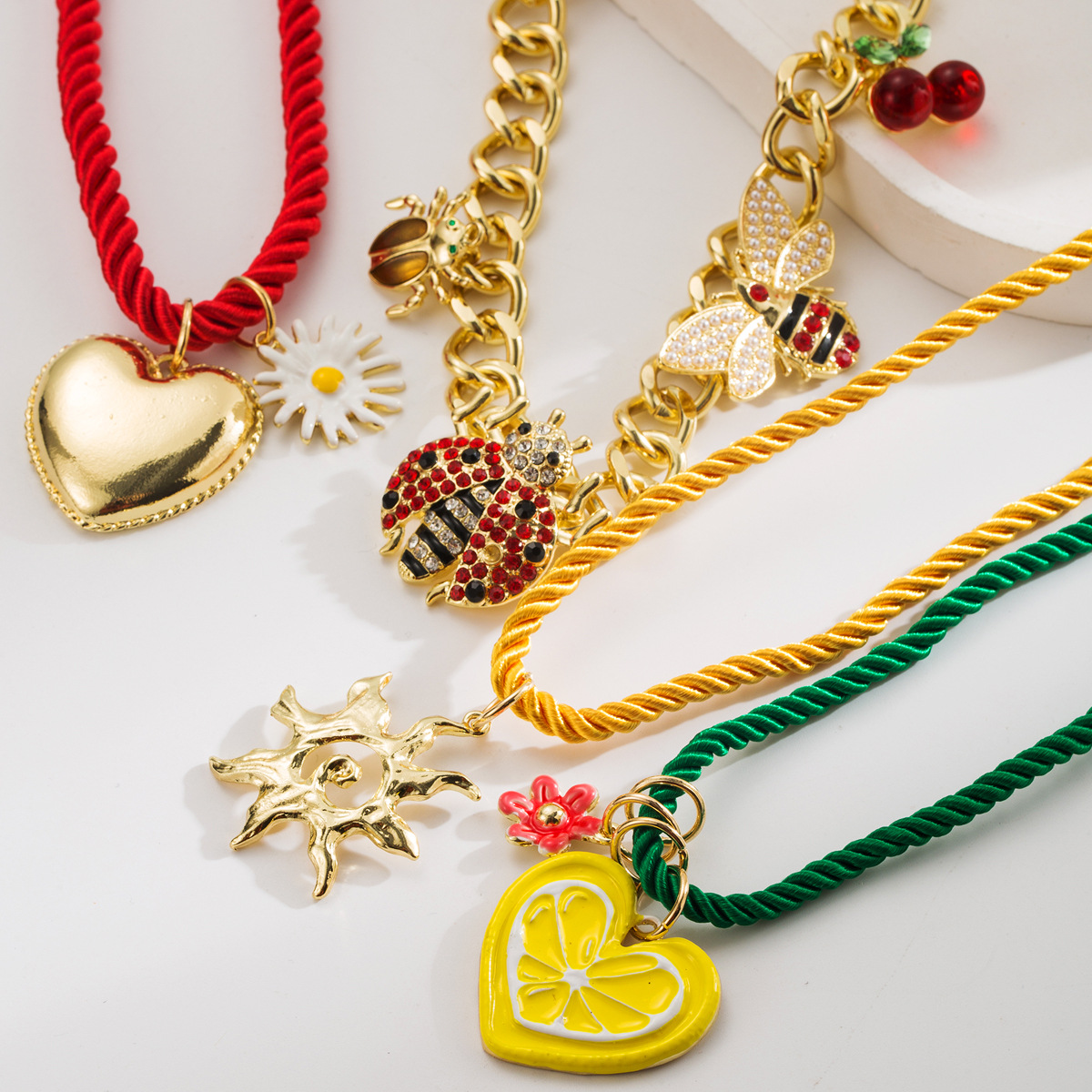 European and American Trendy Hip-Hop Style Colorful Necklace for Women Simple Heart Insect Cherry Blossom Sunflower Necklace Set