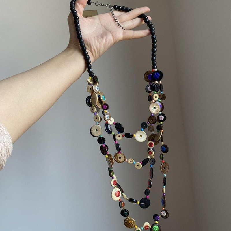 Bohemian Style Multi-Layered Beaded Necklace Dopamine Colorful Coconut Shell Necklace Niche Design Clavicle Chain for Women
