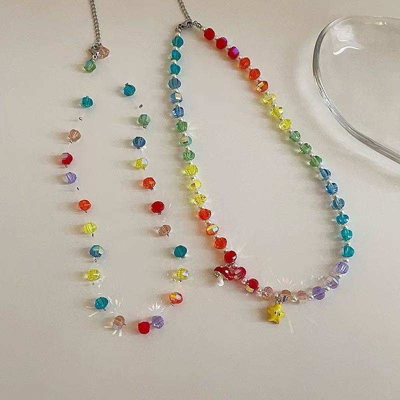 Colorful Dopamine Glass Bead Necklace Niche Light Luxury Crystal Beaded Candy Color Star Clavicle Chain Necklace