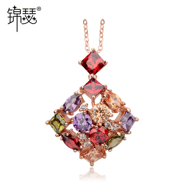 Jinse color zirconium pendant copper inlaid colorful zircon crystal necklace European and American fashion elegant women's jewelry Women's Gift