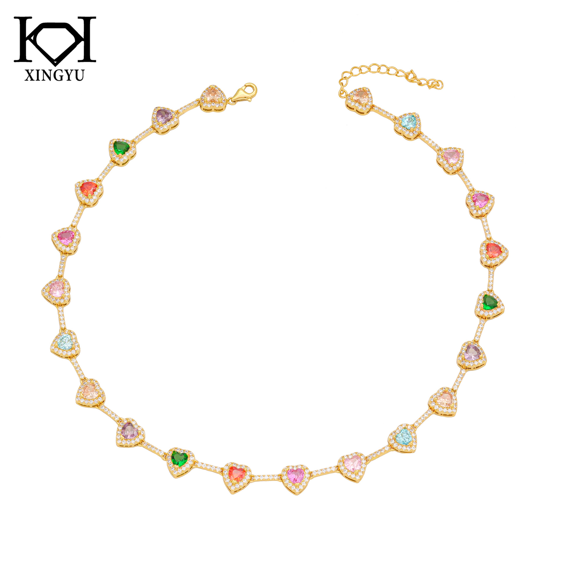 Xingyu New Products European and American Cross-Border Jewelry Pendant Candy Heart Colorful Zircon Necklace Fashion 18K Gold Jewelry