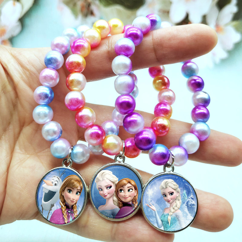 Cartoon accessories New Frozen princess Elsa Anna time gem pendant colorful beaded bracelet
