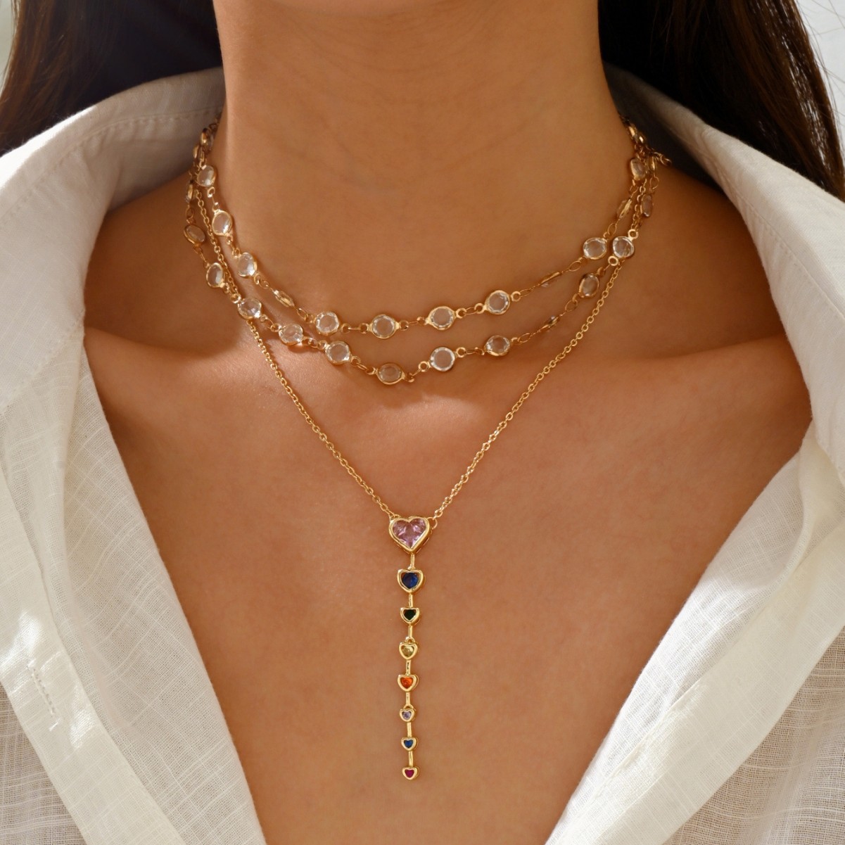Cross-Border Titanium Steel Necklace, Accessible Luxury Niche, Multi-Layered Necklace with Colorful Zircon Inlays, Non-Fading 18K Gold-Plated Necklace