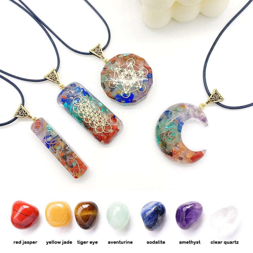 Cross-border Natural Stone Colorful Gravel Pendant Necklace Amazon Explosions Colorful Wheel Resin Crystal Moon Necklace