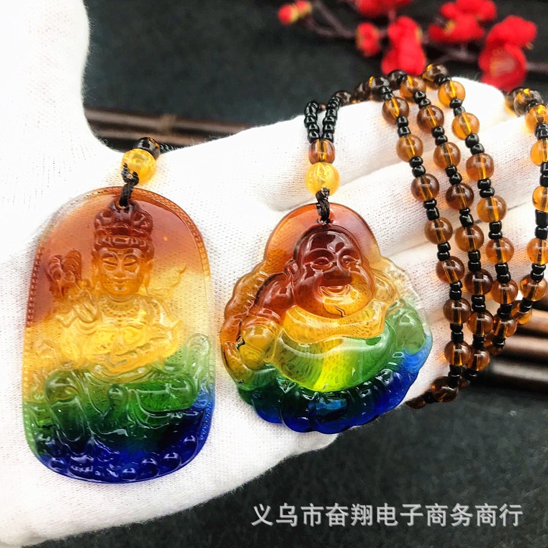 Color colored glaze Guanyin Buddha brave god of wealth pendant necklace autumn and winter multi-style sweater chain manufacturers wholesale
