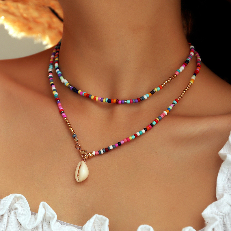 European and American Cross-border Bohemian Style Beads Accessories Women's Clavicle Chain Creative Colorful Rice Beads Shell Pendant Necklace