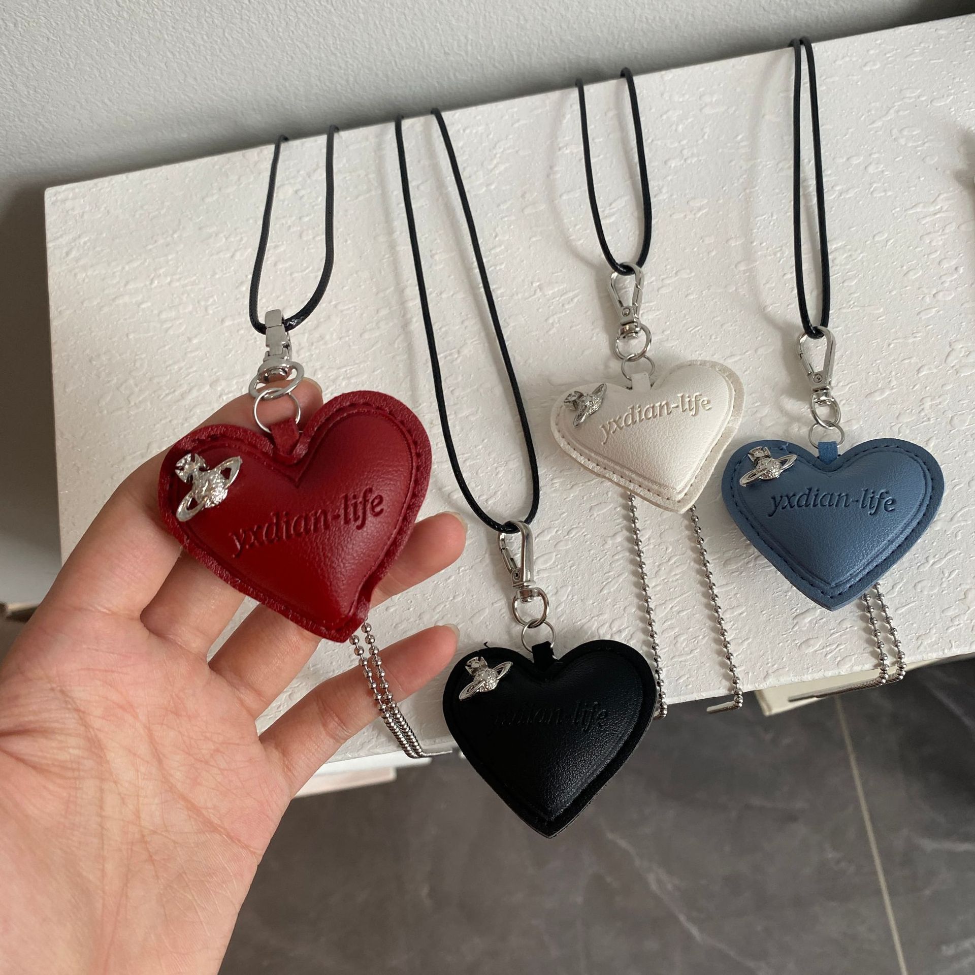 Three-Dimensional Leather Heart Saturn Necklace for Women, Colorfulful Black Rope, Adjustable Long Handmade Sweater Chain, Versatile Accessories