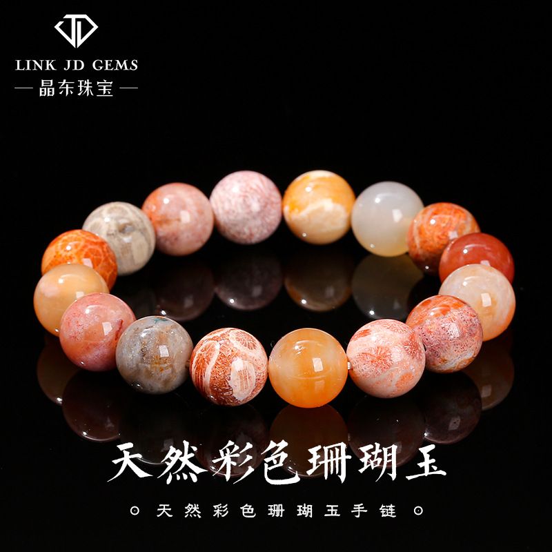 Jingdong Jewelry Natural Coral Jade Bracelet Duobao Color Chrysanthemum Stone Men's and Women's Single Circle Round Bead Bracelet Wholesale