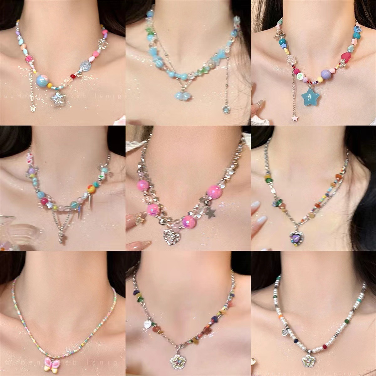 New Colorful Cartoon Love Butterfly Beaded Necklace Sweet and Cute Girly Heart Clavicle Chain Necklace Dopamine