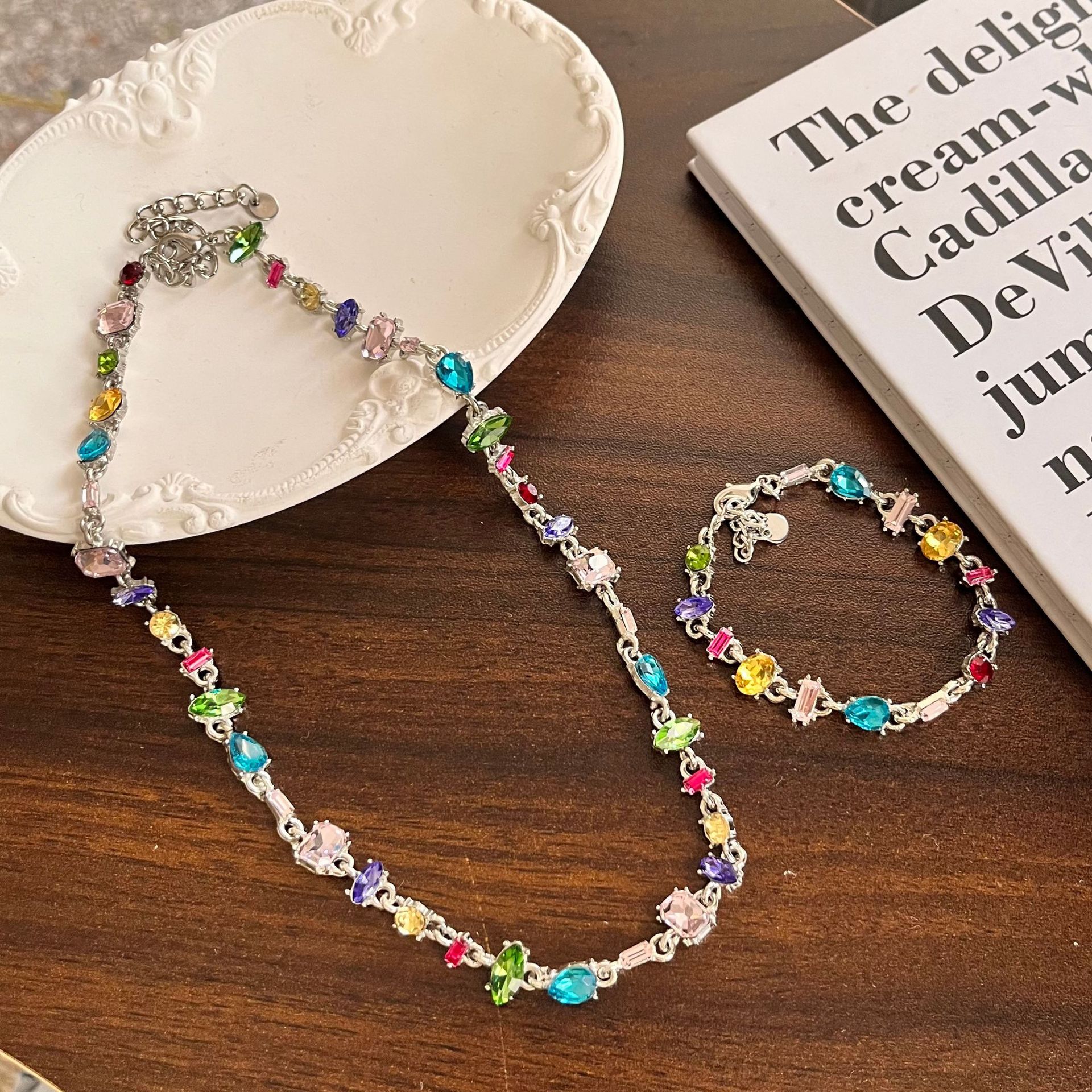 Irregular Colorful Zircon Necklace, Light Luxury Dopamine Bracelet, Ins Niche Versatile High-End Clavicle Chain for Women